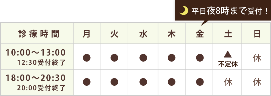 平日夜8時まで診療